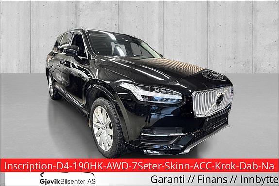 Volvo XC90T8 AWD 407hk Inscription ACC/Skinn/7-SETER/Krok/Parkv2018 ∙ 125 000 km ∙ Plug-in Bensin ∙ 45 km rekkevidde439 900 krSandnes ∙ CARSTORE STAVANGERForhandler ∙ 12 mnd garanti