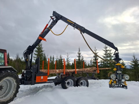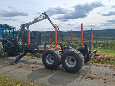 BMF 7T1 med BMF 540 Kran. Tømmerhenger 7 tonn nyttelast og sving på draget