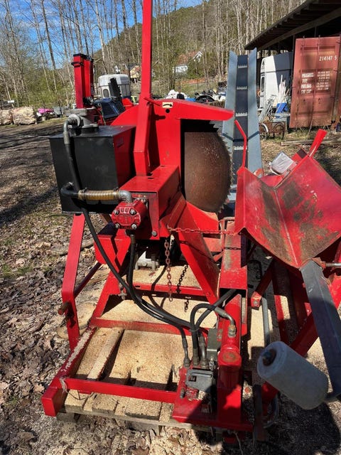Vedmaskin, med et ekstra ubrukt sagblad. MVA-FRI