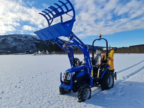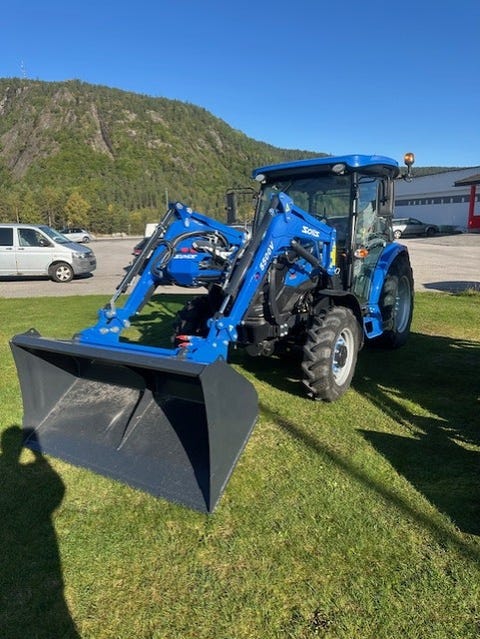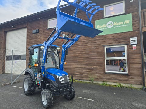 23. sep.Solis 26 hst med hytte, frontlaster og skuffe på 1,2mtr Hydrostatdrift