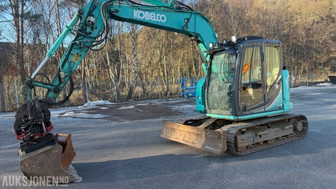 Kobelco SK75 -3E Rototilt R3, fast pusseskuff, grøfteskuff, sentralsmøring
