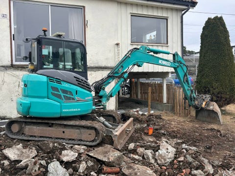 Kobelco SK60SR gravemaskin m/ graveskuffe, hydraulisk pusseskuffe og smalskuffe