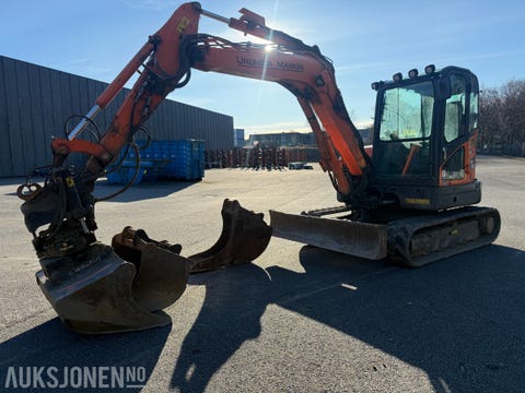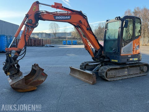 Doosan DX 63-3 EC206, grav, fat puss og grøfteskuff, sentralsmøring