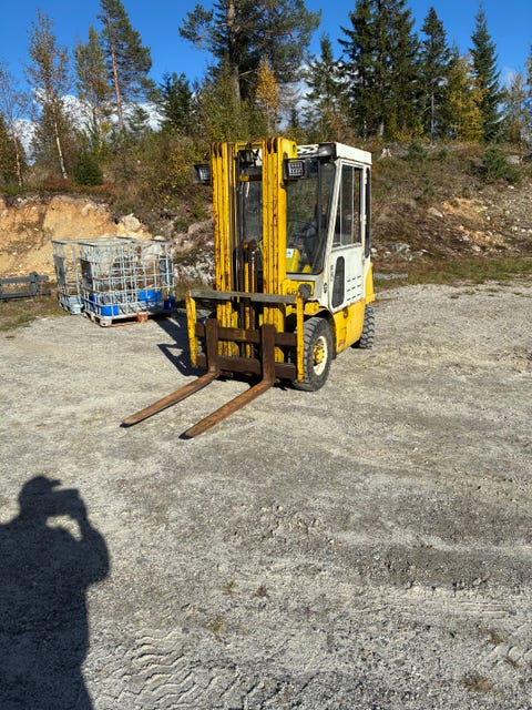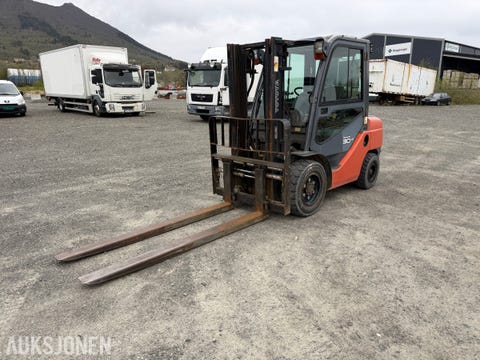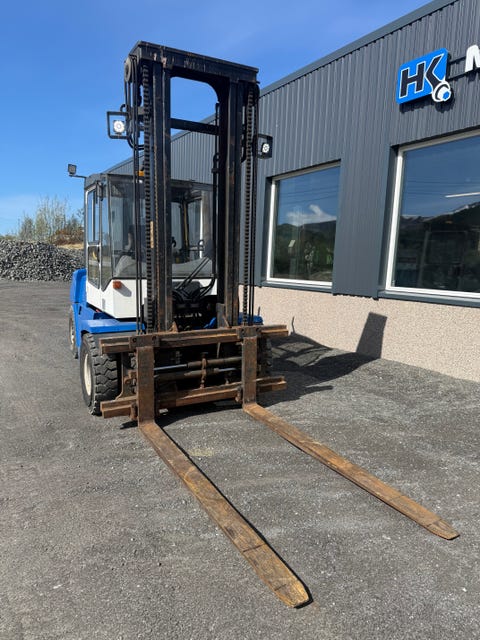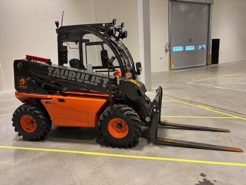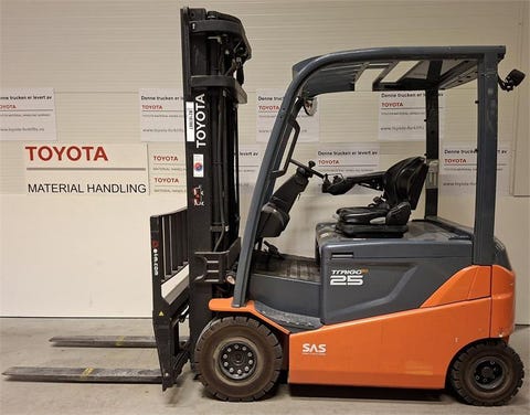 EP EFL253 - NY, PÅ LAGER! FRI FRAKT -elektrisk truck med kapasitet på 2500 KG - komplett med cabin og varmeanlegg, sideskift og spreder på gafler. Leveres med lithium batteri og innebygget lader.