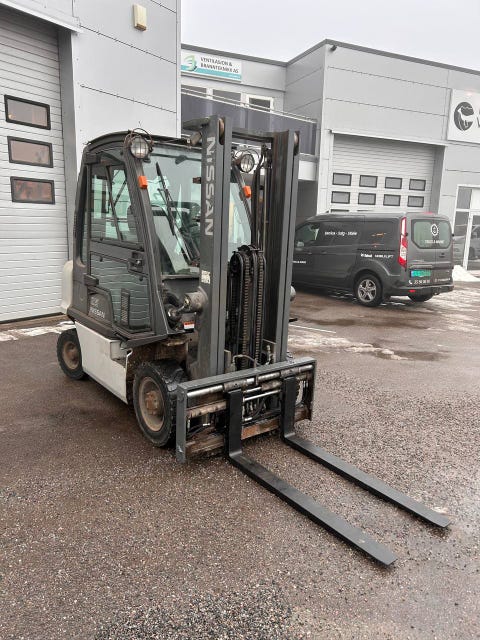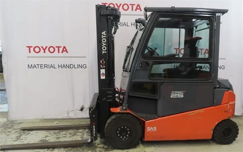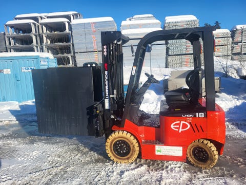 EP EFL253 - NY, PÅ LAGER! FRI FRAKT -elektrisk truck med kapasitet på 2500 KG - komplett med cabin og varmeanlegg, sideskift og spreder på gafler. Leveres med lithium batteri og innebygget lader.