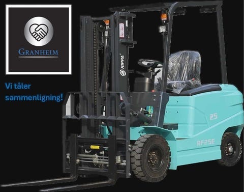 Rippa RF25E – Elektrisk gaffeltruck 2,5 tonn / 4,5 m løftehøyde / sideskift og gaffelspreder2026131 648 krÅl ∙ GranheimForhandler4 dg.Legg til som favoritt.