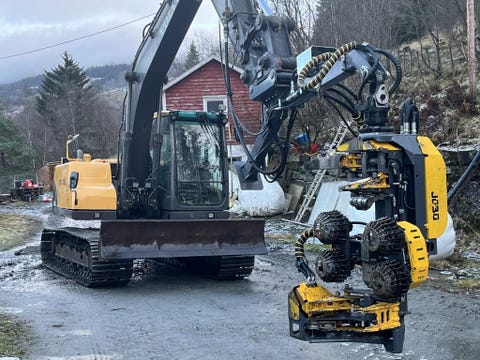 Volvo Ec140cl med hogstaggregat, skuffer og tømmerklo