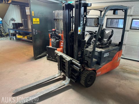 Toyota 8FBE20T truck me gafler og klype. Løftehøyde 4500 mm, Løftekapasitet 2000 kg