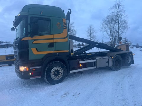 Scania 2005 Scania R580 brøyterigget tridem krokbil med Joab-krok og flak