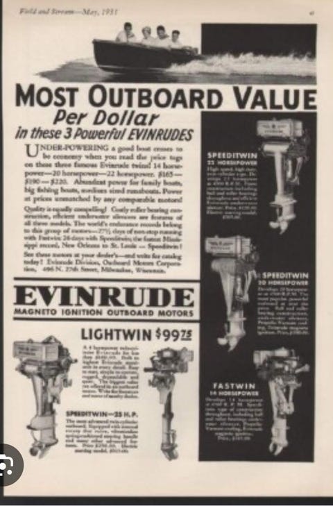 3 dg.Evinrude- Bolinder Trim-Archimedes-Penta-Johnsen Veteranmotorer fra 1934 -1971