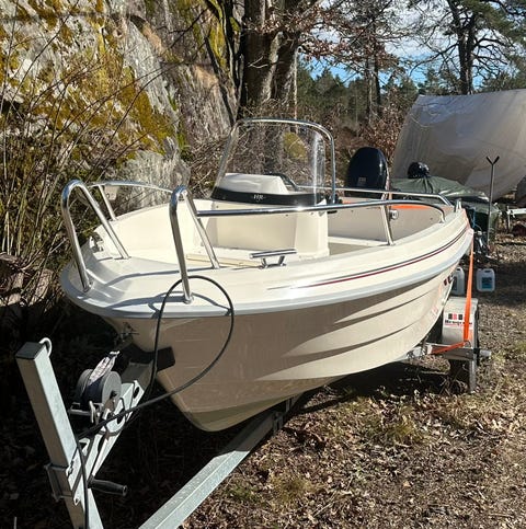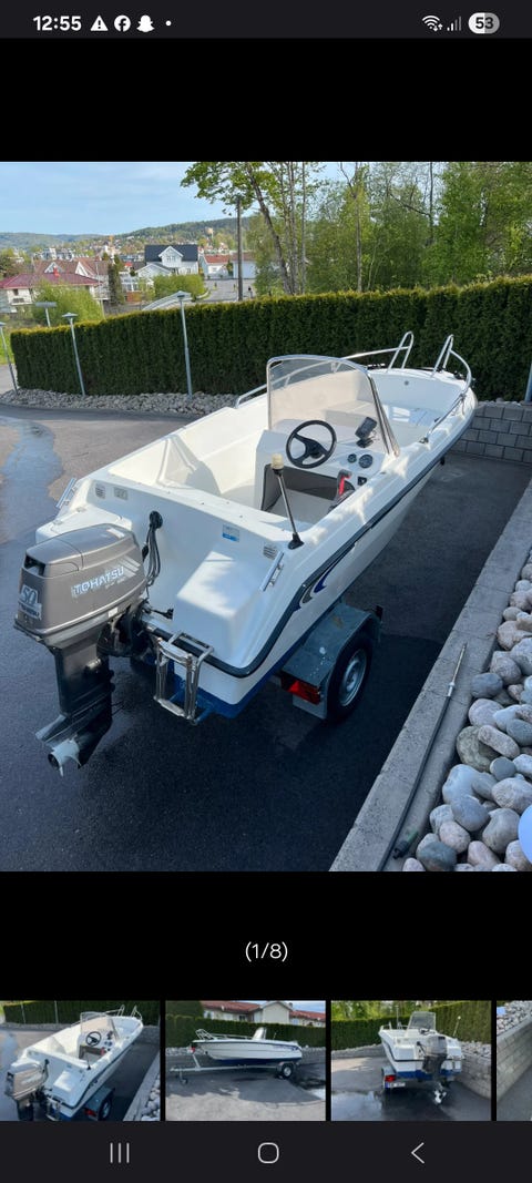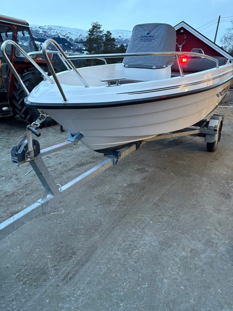 Båten og motor er som nytt.2021 ∙ 15 fot ∙ Bensin ∙ Utenbords ∙ 20 knop49 000 krBrandbuPrivatLegg til som favoritt.Åpne annonse
