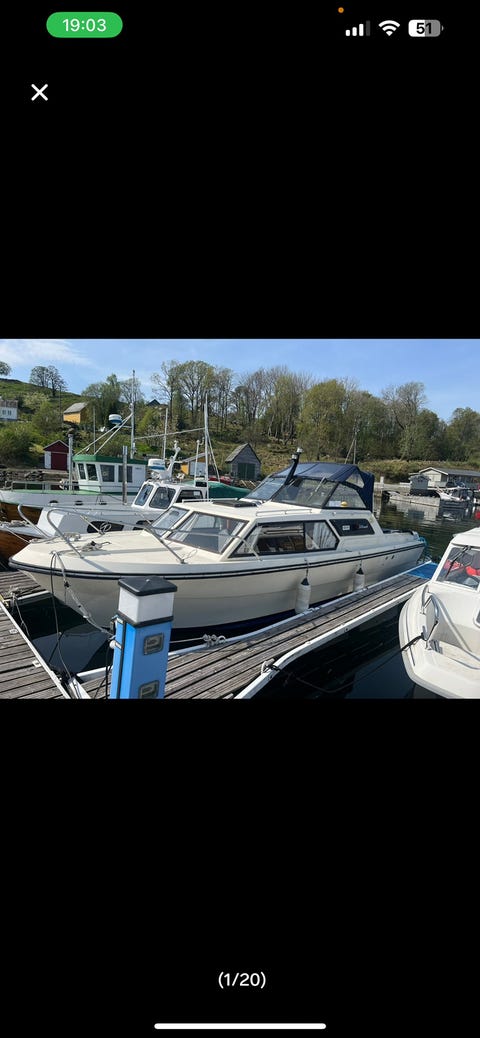 Båt til salgs.1985 ∙ 27 fot ∙ Diesel ∙ Innenbords ∙ 14 knop ∙ 120 hk120 000 krRørvikPrivatLegg til som favoritt.