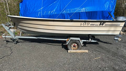 GH 14 fot med motor og henger. Ny pris. 240001998 ∙ 14 fot ∙ Bensin ∙ Utenbords24 000 krHafslundsøyPrivatLegg til som favoritt.Åpne annonse
