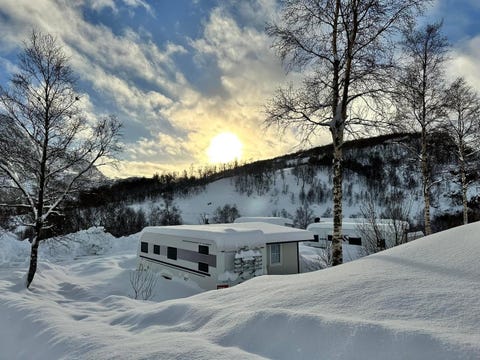 Adria Campingvogn med Vestcamp i Sirdal selges! Hyttekomfort til brøkdel av prisen: vann/avløp, bad m/dusj og wc, varmekabler, varmepumpe og ekstra kjøkken.