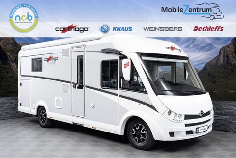 Carthago C- Tourer I 144 QB - helintregert bobil på 6,9 meter med automatgir, høyt stort lasterom og sykkelstativ for el- sykler med heve senkefunksjon