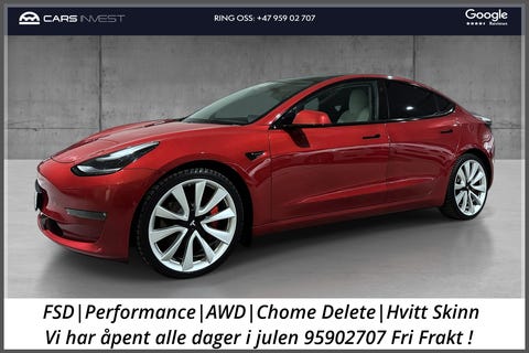Tesla Model 3JULETILBUD!!! Performance - Matrix - EAP - Tonede ruter2023 ∙ 46 894 km ∙ El ∙ 547 km rekkevidde349 900 krDrøbak ∙ Voldene Bil ASForhandler ∙ 60 mnd garanti5 dg.Legg til som favoritt.