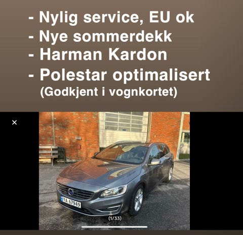 Volvo V60D4 215hk polestar Inscription aut2019 ∙ 164 000 km ∙ Diesel ∙ Automat319 434 krHovin i TelemarkPrivat4 dg.Legg til som favoritt.