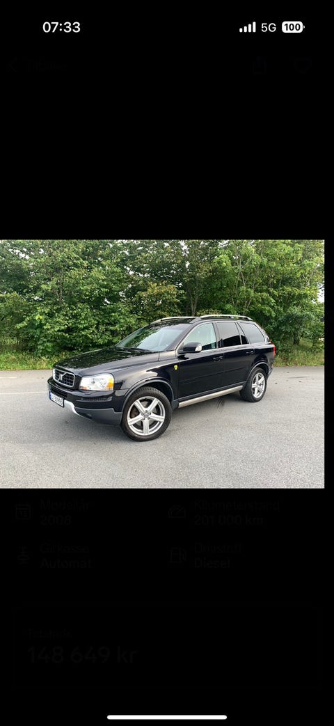Volvo XC90D5 Awd aut Executive 7-seter2008 ∙ 267 327 km ∙ Diesel ∙ Automat78 900 krSøgnePrivat ∙ Service1 dg.Legg til som favoritt.