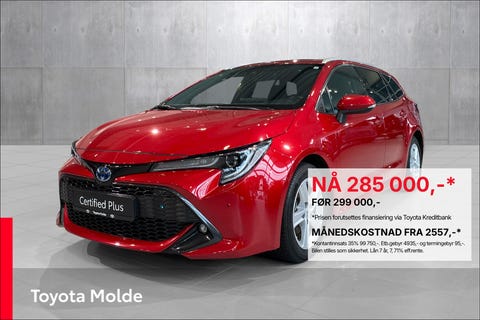 Toyota Corolla1,8 Hybrid Touring Sports Active Tech Sv.2022 ∙ 41 200 km ∙ Hybrid bensin ∙ Automat299 000 krMolde ∙ Toyota MoldeMerkeforhandler ∙ 24 mnd garanti ∙ Bytterett ∙ Service10.12.25Legg til som favoritt.