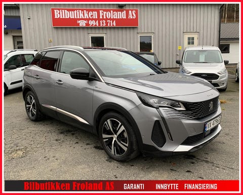 Peugeot 3008GT Hybrid4, ACC,4X4 Pluginn Hybrid.2021 ∙ 87 000 km ∙ Plug-in Bensin ∙ 64 km rekkevidde249 900 krFroland ∙ BILBUTIKKEN FROLAND ASForhandler ∙ 60 mnd garanti8.11.25Legg til som favoritt.