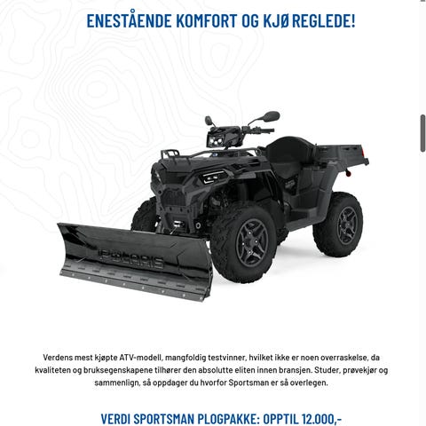 Polaris Sportsman X2 570 EPS Nordic Pro2025 ∙ 600 km ∙ 570 cc165 634 krSkien ∙ CBP ASForhandler26. nov.Legg til som favoritt.