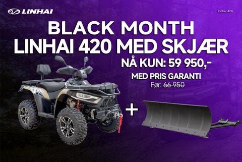 25. jan.Linhai 420 PROMAX TOPPUTSTYRT! KAMPANJE MED GRATIS SNØSKJÆR CLICK AND GO* INKL I DEN ALLEREDE LAVE PRISEN! 4X4 - GARANTI - H+L GIR - KROK - LED LYS +++
