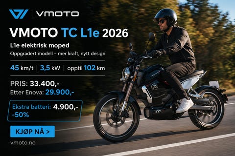 Super Soco VMoto TC Kampanje nå! Gratis frakt*-Spar kr: 6.510,-