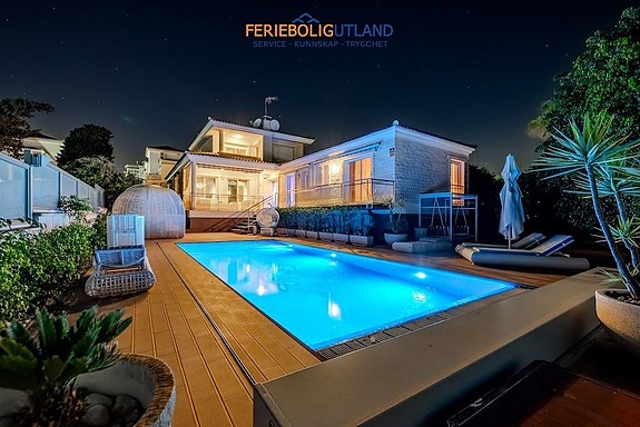 Den har 5 romslige doble soverom og 4 elegante bad, hver innredet i sin egen stil og utstyrt med alt du trenger for maksimal komfort. Fra toppetasjen kan du nyte vakker havutsikt.