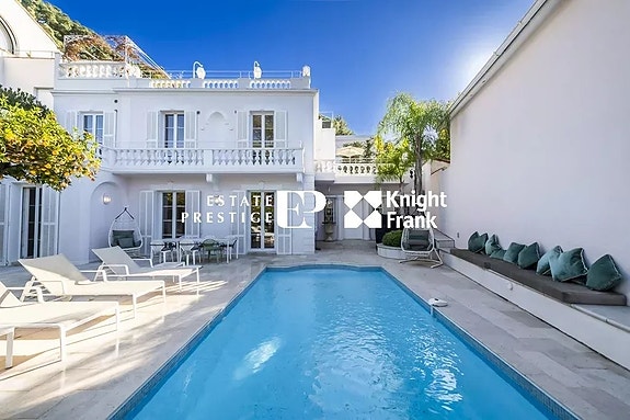 Veldig sjarmerende Belle Époque-villa fra 1907, som ligger på sørvestsiden av Cap d'Antibes, bare noen skritt fra det ikoniske Hotel du Cap Eden Roc og en kort spasertur fra sjøen.