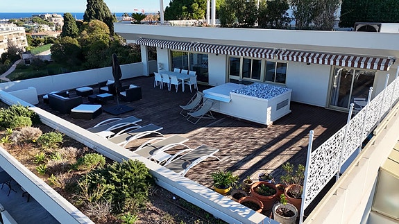 Et privilegert bomiljø, en spektakulær terrasse og en unik panoramautsikt: en sjelden adresse i Antibes.