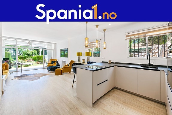 Stilfullt renovert rekkehus i Nueva Andalucía, kun minutter fra Aloha Golf Club og Puerto Banús. Moderne interiør med nytt gulv, oppgraderte bad og åpen kjøkkenløsning. Sørvendt terrasse og privat hage gir sol hele dagen, perfekt for avslapning eller sosiale sammenkomster. Ligger i et inngjerdet kompleks med privat parkering og høy sikkerhet.