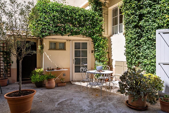 Leiligheten er smakfullt renovert, med originale detaljer bevart og oppgradert med moderne løsninger. Soverommene vender mot den rolige gårdsplassen, som gir en sjelden kombinasjon av fred og privatliv – samtidig som du befinner deg midt i det livlige hjertet av gamle Antibes.