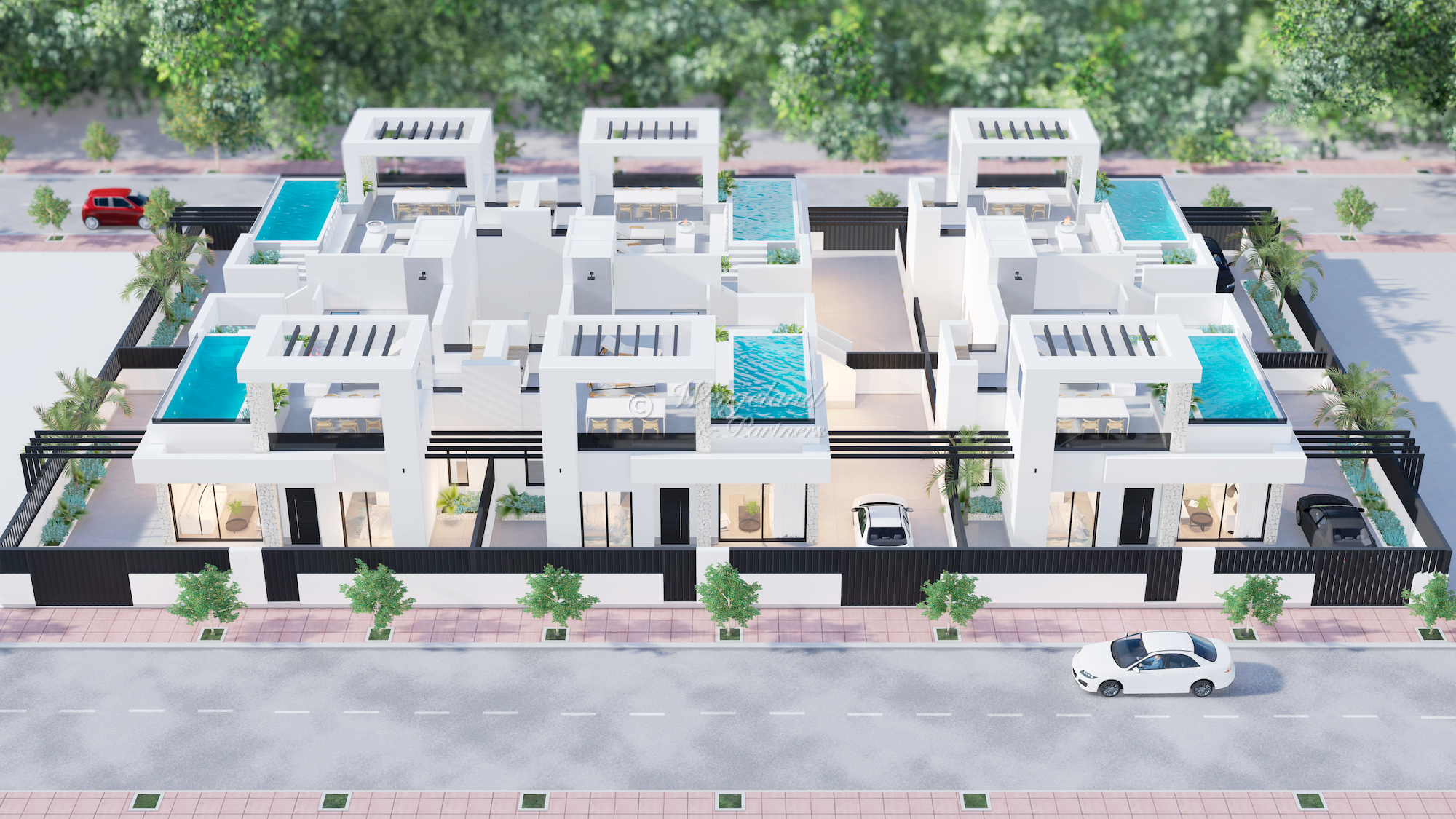 Disse seks villaene ligger sørvestvendt og nordøstvendt (3/3) med kort spasertur til Beach klubben og lagunen. Santa Rosalia er et prosjekt som totalt dekker et område på over 700.000 m2. Det blir et fullt utviklet, inngjerdet samfunn med adgangskontroll og 24-timers sikkerhet. Store grøntområder. Det er flere lekeplasser for barn og et bredt utvalg av tjenester designet for å nyte eiendommen din hele året, eller når du er her på ferie.