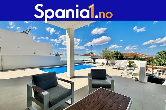 Stilren villa på ett plan | 3 soverom og 2 bad | Stor tomt og privat basseng