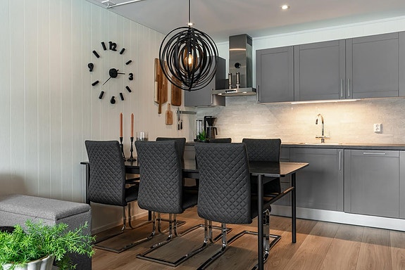 Uteplatsen i söderläge har goda förutsättningar till att bli ett mycket omtyckt häng efter en dag i backen. I hallen finns det utrymme för avhängning. Till höger och vänster i hallen ligger de två mindre sovrummen, här har man valt familjesängar för att utnyttja så många sovplatser som möjligt. I hjärtat av lägenheten hittar du kök och vardagsrum med öppen planlösning perfekt för socialt umgänge. Köket är fullt utrustat med vitvaror från siemens. Från vardagsrummet når du uteplatsen som har bra extra förvaring för skidor, plats för härliga kvällar att sitta och grilla samt ett spabad. Innanför vardagsrummet hittar du det större sovrummet med dubbelsäng och extra förvaring platsbyggd förvaring. Självklart finns det bastu i det helkaklade badrummet samt tvättmaskin.