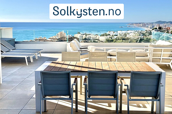 Vi har for salg denne hjørne-toppetajeboligen i det populære og veldrevne anlegget Panoramica ved Carvajal og Reserva del Higueron. Leiligheten ligger med sørvestvendt orientering. Boligen har en stor takterrasse med plass til solsenger, grillplass etc.