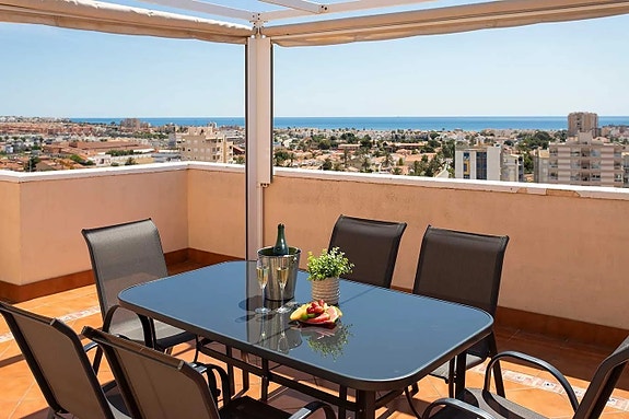 Torrevieja- Tiltalende toppleilighet med stor terrasse og havutsikt. Felles bassengområde.