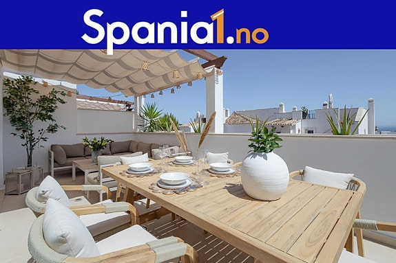 Nylig oppgradert toppleilighet over to plan i det eksklusive Aloha Royal-komplekset i Nueva Andalucía. Leiligheten har tre romslige soverom og to bad (hvorav ett en-suite) og er totalt på 119 m² innvendig, i tillegg til en terrasse på 71 m². Store uteplasser med solrik sørvestlig orientering gir vakker utsikt mot både hav og fjell. Inne finner du en lys stue med peis, kvalitetsmaterialer som marmor på gulv, og moderne bekvemmeligheter som klimaanlegg, Wi-Fi og satellitt-TV. Boligen selges fullt møblert og er klar for innflytting. Aloha Royal er en sikret, inngjerdet urbanisasjon med hage, fellesbasseng og kort vei til golfbaner, butikker og Puerto Banús.