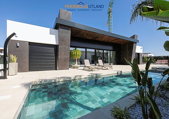 Villaen er på 150m2 med en romslig stue på 55m2 som ser ut på det store bassenget på 9x3m. Dette rålekre designet skiller seg ut fra mange andre villaer du vil se i dette området.