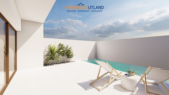 Dette er et nytt anlegg med 3 romslige rekkehus med privat svømmebasseng, terrasseområde og stor takterrasse til hver eiendom.