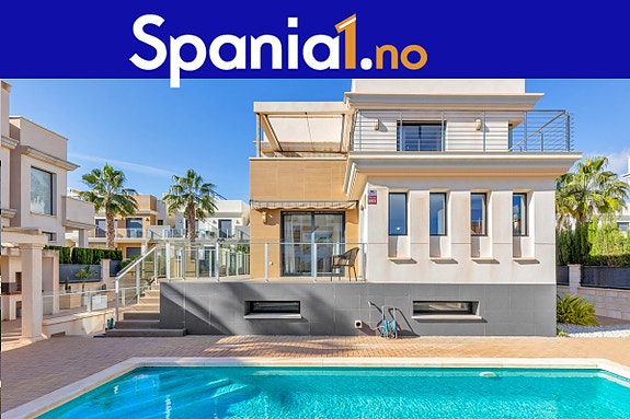 Villaen ligger i et eksklusivt boligområde og tilbyr privat basseng og en tomt på 410 m². Boligen har et bruksareal på 250 m² fordelt over fire etasjer.