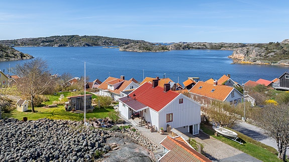 Från huset har man en magisk utsikt över Fjällbackas skärgård från såväl altan, kök och flera andra rum i bostaden.