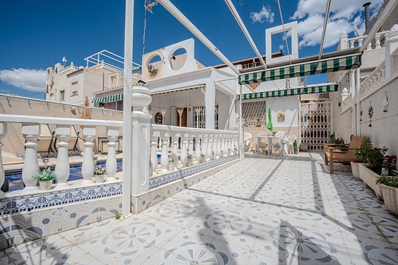 Her får man 2 soverom, 2 bad, stue, kjøkken, terrasse samt privat basseng. Møblert og med aircondition.