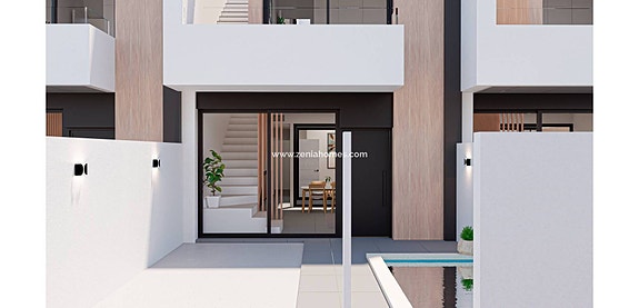 Rekkehus med 3 soverom og 2 bad beliggende i utkanten av San Pedro bare en liten time fra flyplassen i Alicante. Her kan du gå til stranden på 30 minutter. Privat basseng og parkering på egen tomt. Takterrasse med mulighet for sommerkjøkken. Ferdigstillelse til våren 2026.