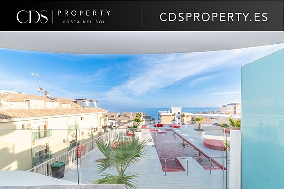 Denne arkitektonisk unike leiligheten på 89 m² ligger kun 25 meter fra Fuengirolas 7 km lange strandpromenade. Med 2 soverom, 2 bad og takbasseng, er dette en sjelden mulighet for de som ønsker kystliv i avantgarde-design.