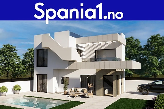 Moderne villa med hage og privat basseng | 3 soverom og 2 bad | Parkering på tomt | Mulighet for takterrasse