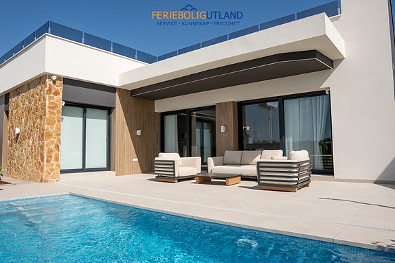 Nova er en villa på 107 m2 med alt på ett plan. Her er det 3 romslige og moderne soverom, 2 lekre bad og en smakfull stue og kjøkken i åpen løsning. Uteområdet er råflott med privat takterrasse med utsikt over hagen og bassenget på 6x3 meter. Det er også parkering på tomten samt elektrisk port for enkel tilgang. Pris fra 532.000 euro eks. omkostninger.