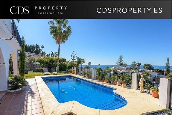 Velkommen til en unik villa med uforstyrret utsikt over Middelhavet og hele Fuengirola-bukten – en sjelden mulighet i et av Benalmádena Costas mest etterspurte områder. Boligen ligger i rolige omgivelser i urbanisasjonen Torremuelle, kun 10 minutters gange fra stranden, Torremuelle togstasjon, dagligvarebutikk, internasjonal skole og populære restauranter – blant annet Trocadero, Las Yucas og strandbarer som Parador og La Viborilla.