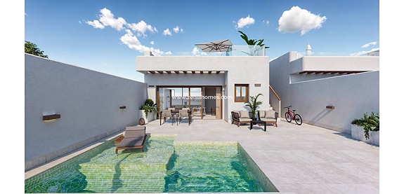 En gylden mulighet til å få en ny enebolig med 2 soverom og 2 bad og privat basseng i hagen, samt parkering på egen tomt, til en meget fordelaktig pris ! Takterrasse med utsikt. Kun 15 minutter fra de flotte strendene langs Mar Menor. Gåavstand til golfbane og alle daglige gjøremål. Mulighet for 3 soverom til 319 000 euro. Estimert ferdig november 2025. Få boliger igjen !