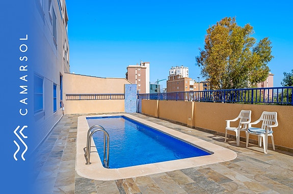 Velholdt toppleilighet over to plan med stor privat takterrasse og felles basseng, sentralt i Guardamar og kun 10 min å gå gjennom pinjeskogen til stranden.
